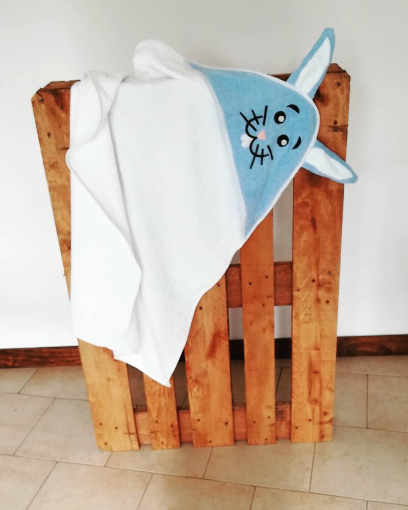 Accappatoio da bambino/a in spugna, misura standard. Su richiesta si può realizzare in diverse tipologie di animali.